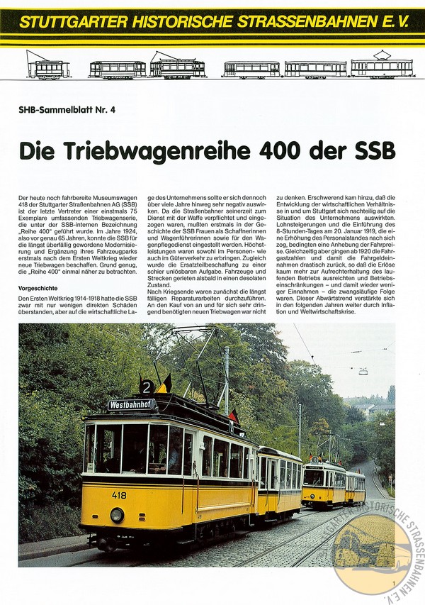 Fahrzeugbeschreibung "Die Triebwagenreihe 400 der SSB"